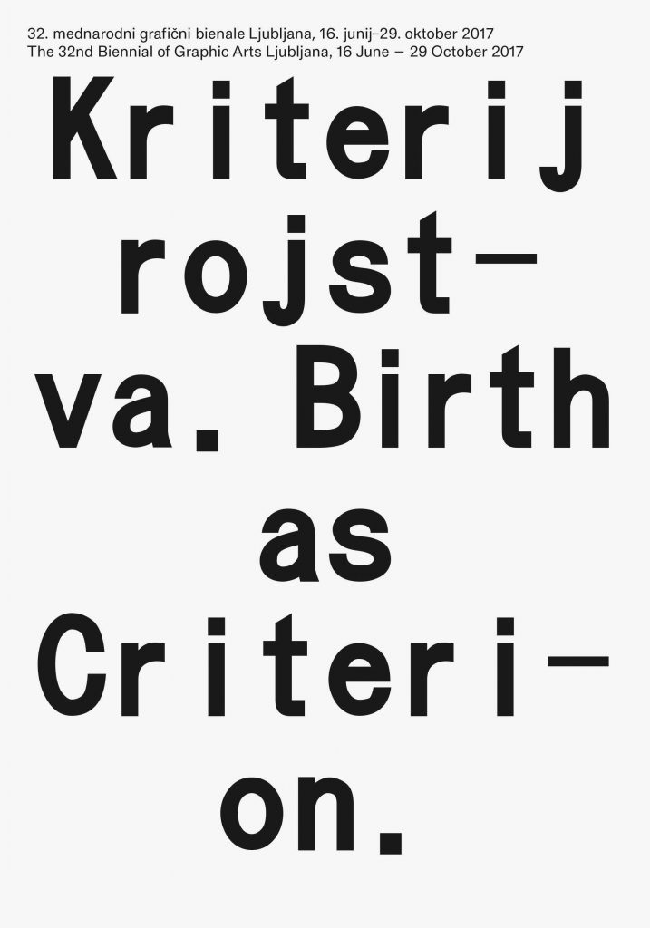 Z načinom izbire sodelujočih umetnikov je osrednja razstava 32. grafičnega bienala za svojo izhodiščno točko postavila transgresivni moment, ki je meril na radikalno preoblikovanje – ne le vsebine dogodka, temveč tudi njegove strukture. To nakazuje že njegov naslov Kriterij rojstva, ki se navezuje na pesem modernističnega pesnika iz 20. stoletja Jureta Detele – pesem, ki je ponudila impulz za samorefleksijo, kakršne se je lotil bienale. Ali z drugimi besedami, celo kadar je 32. grafični bienale zavračal okvir tematske razstave, je izhajal iz pesmi, vendar take, ki razstavi ni ponudila vodilne teme, ampak je s svojim radikalnim preizpraševanjem vseh polarnosti klicala k prelomu. Prelom, ki ga je vpeljala pesem Jureta Detele, je odzvanjal v rizomski strukturi tega bienala, ki je – brez osrednje figure kuratorja – namesto tega deloval kot entiteta, ki proizvaja samo sebe. Z izstopom iz območja ugodja je, naj gre za tradicijo Bienala ali pa uveljavljene protokole snovanja razstav sodobne umetnosti, Kriterij rojstva postavil v ospredje raznovrstna razmerja – mnogoterost, ki ni imela enega samega, združevalnega koncepta, namesto tega je obstajala kot nepretrgan tok pomenov in je ponudila množico potencialnih povezav in interakcij med umetniškimi deli.