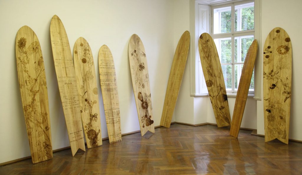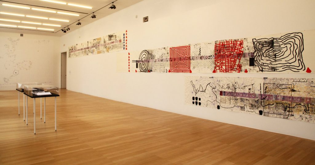The main exhibition Interruption highlighted certain developmental aspects that the graphic field had undergone within the contemporary times. Printing processes expanded and touched many genres of contemporary art. Select, traditional media managed to maintain their relevance, by evolving and adapting, others became obsolete and sunk into oblivion. Other, newer processes, especially digital practices, seemed to have finally established themselves after a long period of maturation as legitimate tools of artistic expression. The main exhibition thus focused on projects that have a fresh, contemporary approach to traditional methods, develop the established graphic procedures with new ways of utilising them or employ new print technologies within high-quality artistic investigations. In most cases, the techniques used reflect and comment on the situation in the world in which we live: how we receive information today, how we communicate or try to communicate with each other, how we (do not) understand the world. The repeated reflection on printmaking as form and content strengthened the polygraphic terrain and connected the work of artists from around the world.