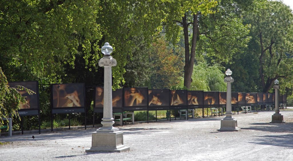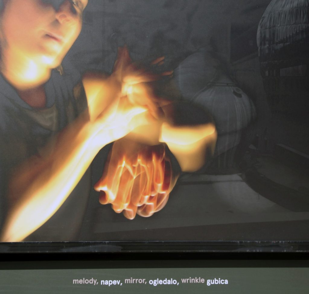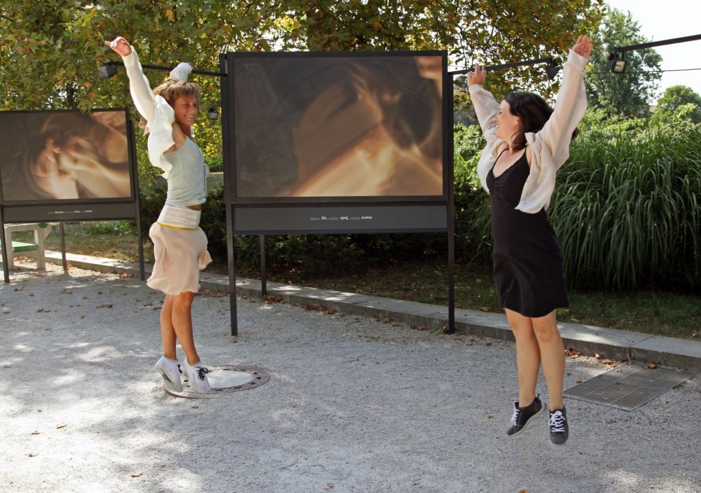 An important part of the main exhibition was the site-specific project by the artist Charles Juhász-Alvarado, described by Deborah Cullen as a silent drama. He addressed passers-by with 118 photographs on billboards on the Jakopič Promenade in the heart of Tivoli Park. The images surrounding the benches were mirrored or rhymed, thus acting as a choir. Working with Karen Albors, whose parents are hearing impaired, he created a visual sequence that unfolded in front of the viewers as they strolled along the promenade. The artist’s sister, the writer and translator Emeshe Juhász-Mininberg contributed the texts tied to each image, which combined to form a poem. They referred to the images, but at the same time weaved a cadence that accompanied viewers along the way. The Slovenian version and design of this unique intertwining between the images of sign language and the poetic inscriptions was created by Mina Fina, which represented another partnership that emphasised the counterpoint of languages and at the same time placed translation, coincidence and exchange into the forefront. The project was about universal, common points since this was the only way that it could evoke emotional perception.