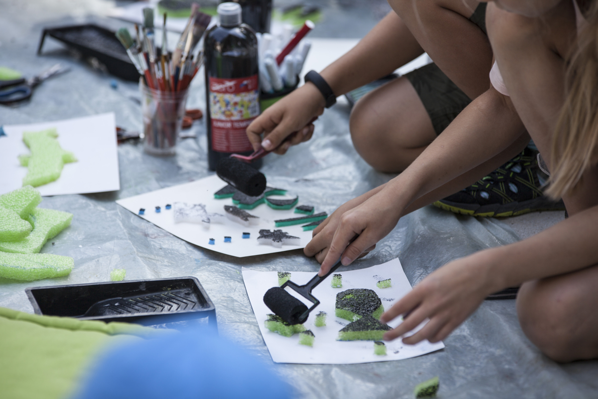 We carry out relief printing workshops for our youngest group of “hedgehogs” (4–12 years old), tell each other jokes and talk about large-scale exhibitions.