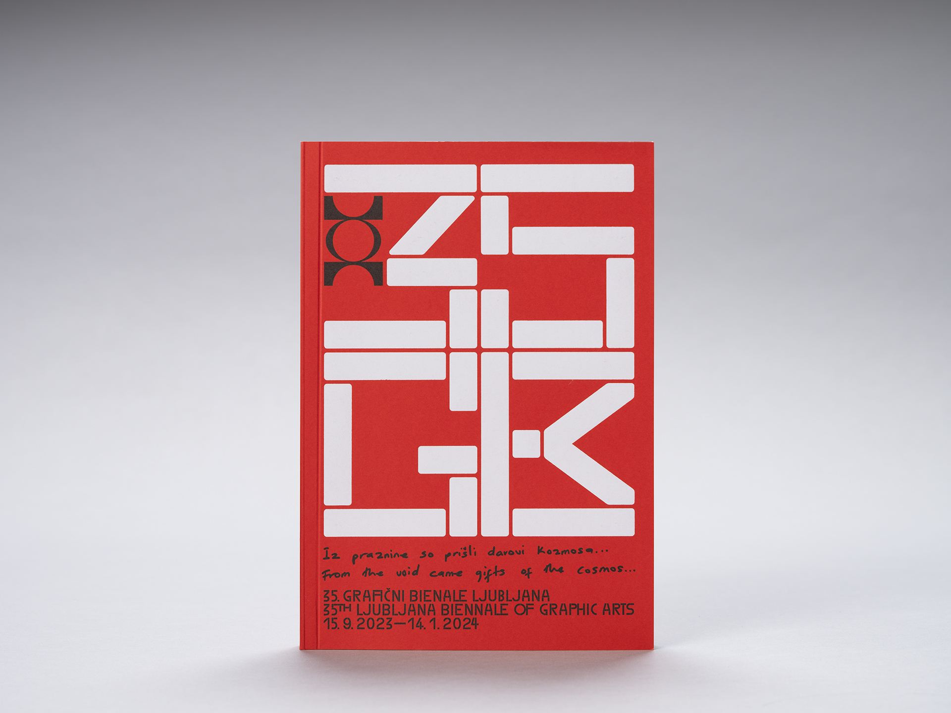 The 35th Ljubljana Biennale of Graphic Arts entitled From the void came gifts of the cosmos was accompanied by a comprehensive catalogue, which includes a note by the curators on the concept of the Biennale, descriptions and colour reproductions of the works by the exhibiting artists, as well as texts on the recipient of the Grand Prize of the 34th Ljubljana Biennale of Graphic Arts and the concept of The Holy Corner print portfolio. The main exhibition invited visitors to become part of an ecosystem of transnational alliances and solidarities as well as emerging histories of resistance and liberation. Drawing on the legacies of diverse histories, the Biennale was conceived by the curators as a space of potential that offers the possibility of transforming the void into the gifts of the cosmos. In this context, the void formed an egalitarian framework from which multiplicity emerged, while functioning as a site of artistic indeterminacy guided by a spirit of inclusion.