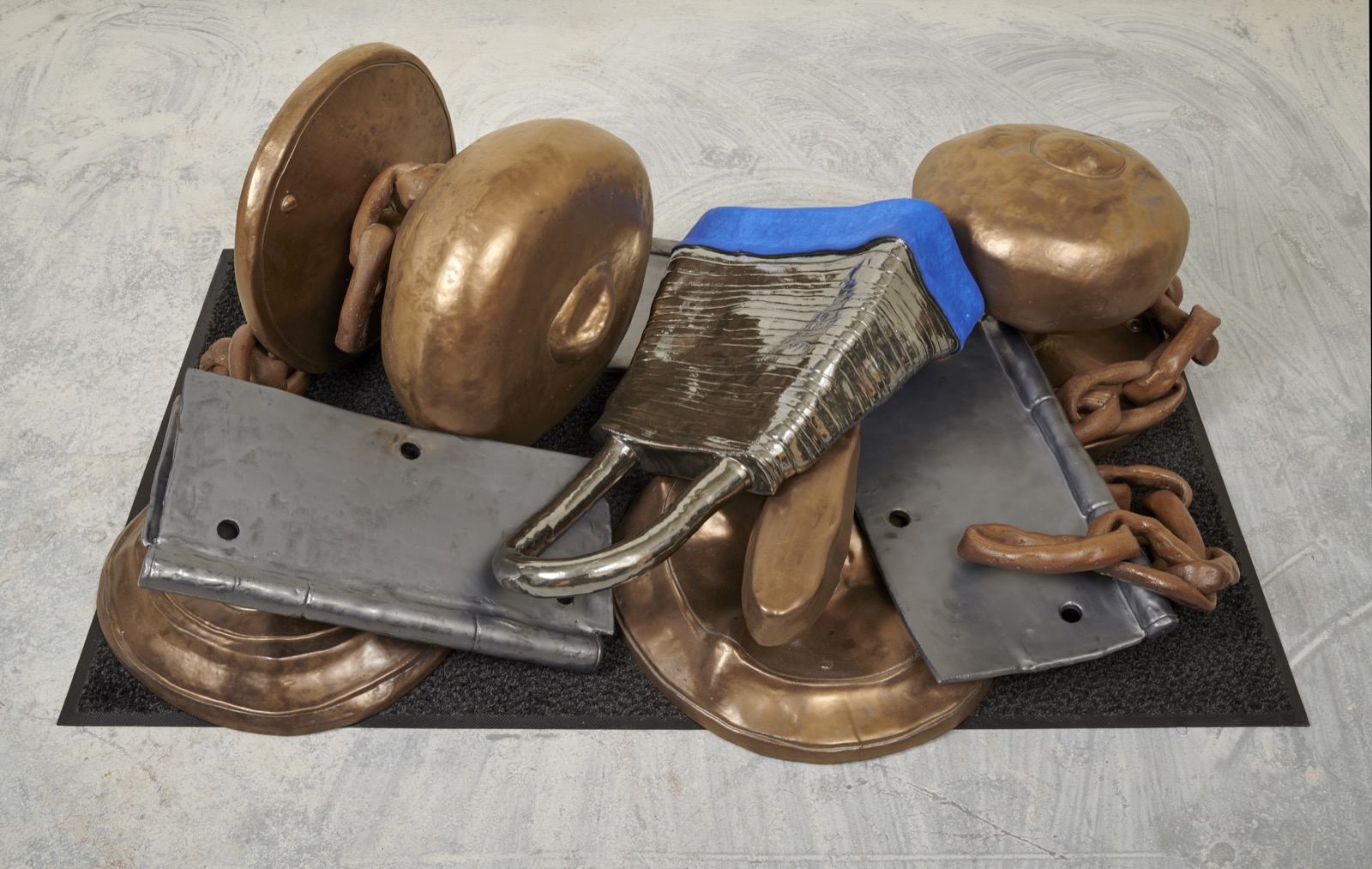 Woody De Othello, Warm Welcome, 2019; ceramic, glaze, underglaze, multiple components; 50.8×91.44×152.4 cm.