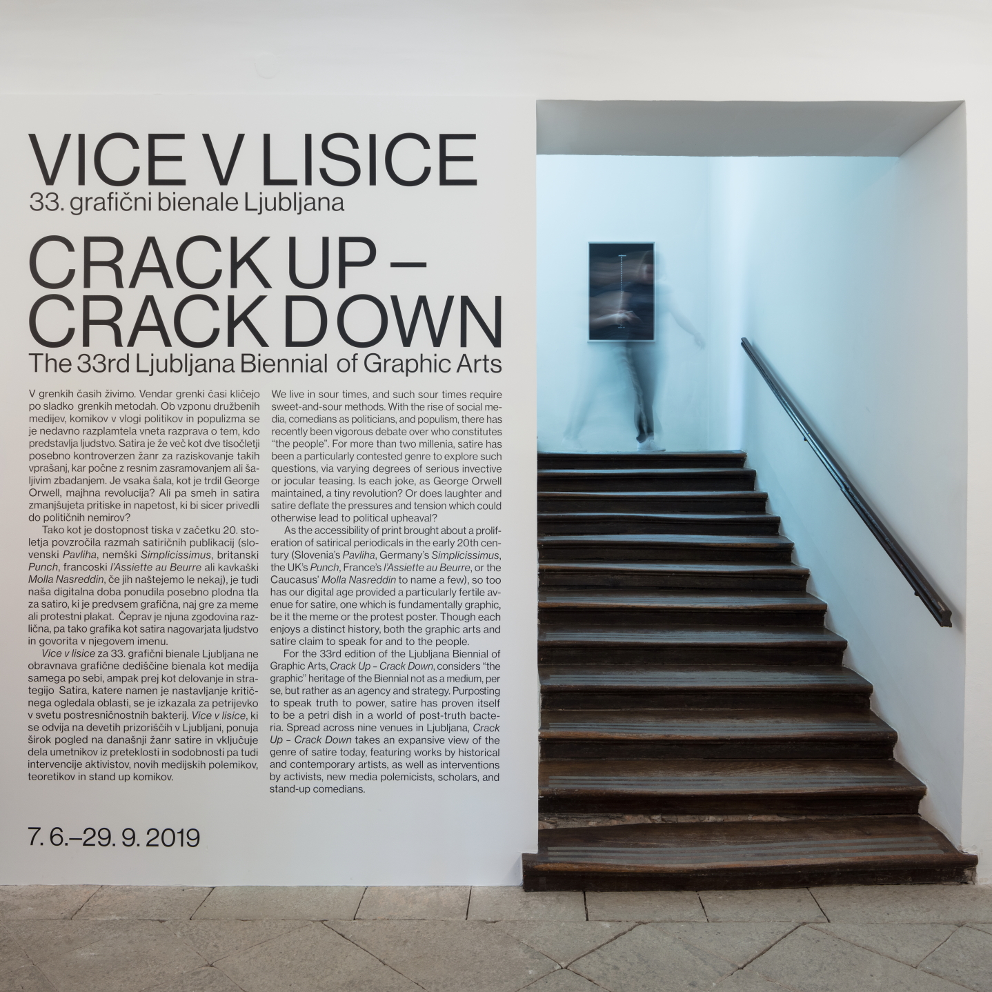 Vladimir Vidmar, kurator, raziskovalec, pisec ter umetniški vodja Male galerije v Ljubljani, bo 17. septembra (z začetkom ob 17. uri v MGLC) vodil po 33. grafičnem bienalu in se osredotočil na aktualna vprašanja satire, njene reprezentacije, identitete, politike, religije, družbenih norm … Za ugledno International Biennial Foundation je reflektiral tudi letošnjo izdajo bienala.